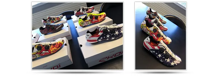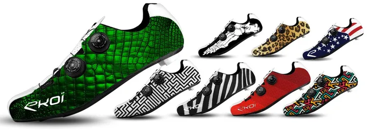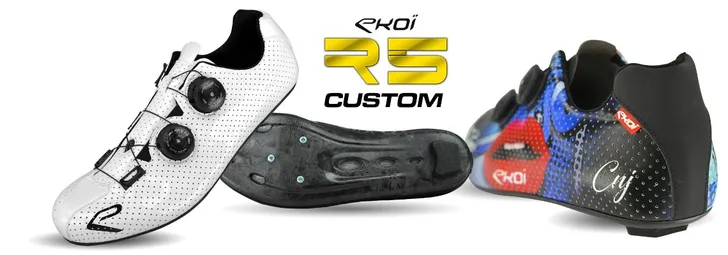 De Ekoï R5 Custom is onderdeel van het premium label van Ekoï dat in de eerste plaats ontwikkelt is voor de topsporters die gesponsord worden door Ekoï. Ook voor de gewone klant probeert het Franse bedrijf de beste service te leveren. De producten van het premium label worden ontworpen door Franse of Italiaanse ontwerpers en uitgebreid getest. Ekoï heeft zijn eigen ingenieurs die de producten door ontwikkelen en ze claimen de beste materialen te gebruiken waarbij ze alles in Europa produceren. De R5 Custom is volgens Ekoï zeer licht en zeer stijf. De schoen bestaat uit één stuk zonder naden en een ergonomisch gevormde hiel. In maat 41 is de schoen 276 gram en de zool is van carbon met 6 ventilatie gaten. De schoen heeft het ATOP sluit systeem wat vergelijkbaar is met het BOA sluitsysteem, daarmee draai je de schoen strakker of losser.
