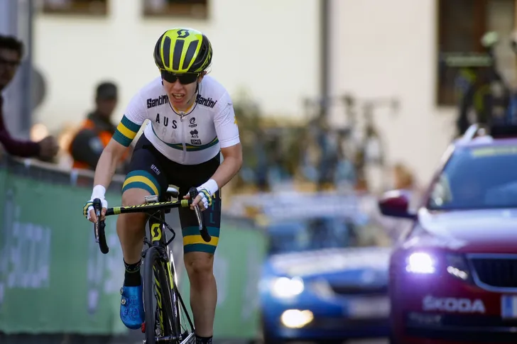 Op het lastige Tiroolse parkoers was de Zwolse simpelweg superieur: toen Anna van der Breggen haar versnelling plaatste kon niemand mee. Amanda Spratt was de laatste die het achterwiel van de zegekoningin van Boels-Dolmans moest laten gaan.