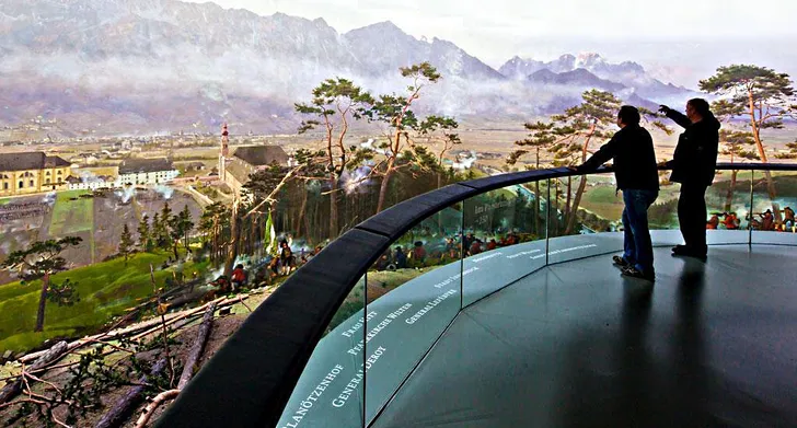 Strijd om Tirol is er altijd al geweest. Napoleonistisch Frankrijk streed met hun Beierse bondgenoten in de 18e eeuw om het Alpengebied. Het Tiroolse volk verzette zich hevig, maar in alle chaos werd in 1805 Tirol aan Beieren toegekend. En in een keer was hij daar: volksheld Andreas Hofer. In 1809 kwam het viermaal tot een slag bij de Bergisel, een heuvel ten zuiden van Innsbruck. En drie keer wist Hofer het Tiroolse volk tot een overwinning op de Fransen te leiden. De vierde keer was de strijd echter al na twee uur gestreden. Napoleon boekte een glansrijke overwinning en Andreas Hofer vluchtte naar een berghut. Hij werd verraden en een halfjaar later werd hij in Italië gefussilleerd. In dezelfde stijl als de Panorama Mesdag werd de Slag bij de Bergisel vereeuwigd op het Riesenrundgemälde.