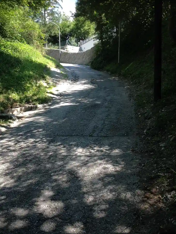 Hij begint lichtjes; pas bij de eerste haarspeldbocht ter hoogte van Schloß Ambras neemt het stijgingspercentage toe tot zo’n 6%. Veel steiler wordt de weg niet, pas bij het dorpje Lans komt de helling eventjes boven de 9% uit. Wel is Igls een onregelmatige berg. Soms vlakt ie flink af, terwijl je even later weer uit het zadel moet komen.