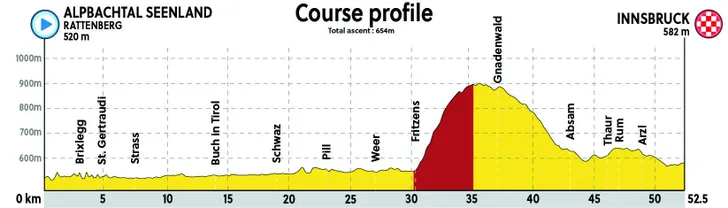 Wat volgt is een razendsnelle afzink naar Absam, om uiteindelijk na 52,5 kilometer in de hoofdstad van Tirol de finishlijn te passeren.