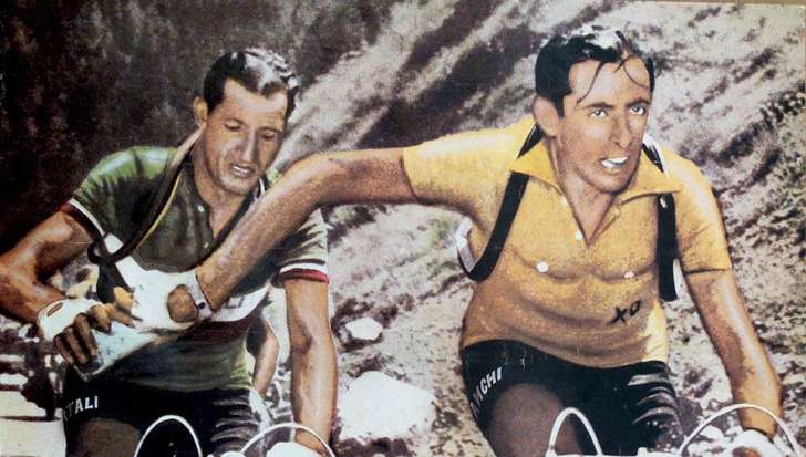 Sommige rivaliteiten overstijgende sport, en dit is het oermodel. In de Tour van 1949 reden Coppi en Bartali samen weg van de concurrentie in de Tour, met Coppi die daarna het geel veroverde. In dezelfde Giro sloeg Coppi Bartali in de bergen uit het wiel en won met overmacht, maar Bartali bleef de volksheld. Italië stond letterlijk in twee kampen. Coppi, de eigenzinnige, overspelige versus Bartali, de brave katholieke.