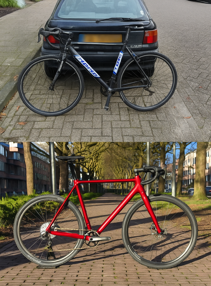 En dat is meteen een nuttige tip voor iedereen die met een het idee voor een oude crossfiets ombouwen speelt. Kijk eerst naar je bandenspeling en remsetup. Past er weinig meer dan 33 mm? Dan ben je gewoon beter af met een opgeknapte crosser die doet waar hij voor gemaakt is.