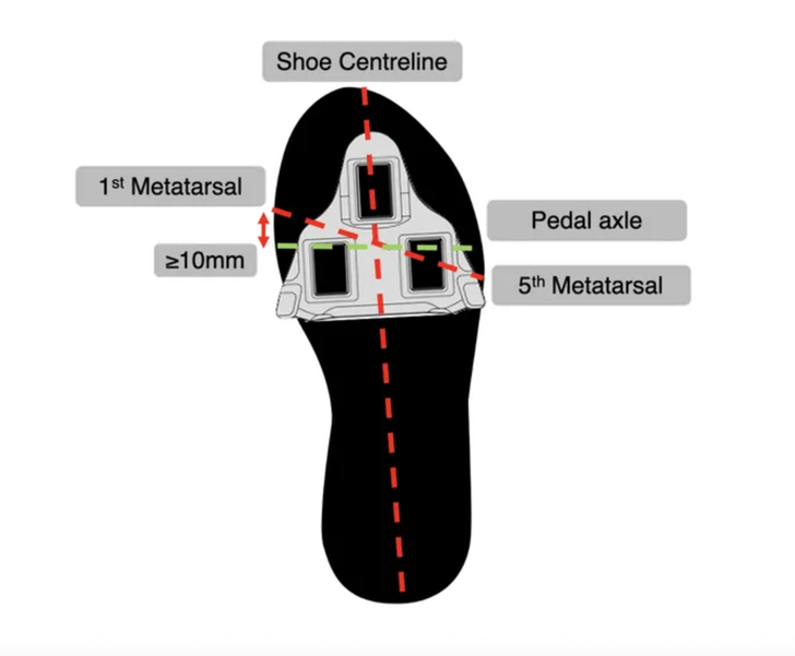 Je gaat met je hak naar beneden trappen, je pedaalslag wordt onrustig en de klappen op je pezen en gewrichten nemen toe. Schuif je cleats een stukje naar achteren, dan krijgt je voet een stabielere basis en verdeel je de kracht veel beter over je hele keten, van voet tot heup.