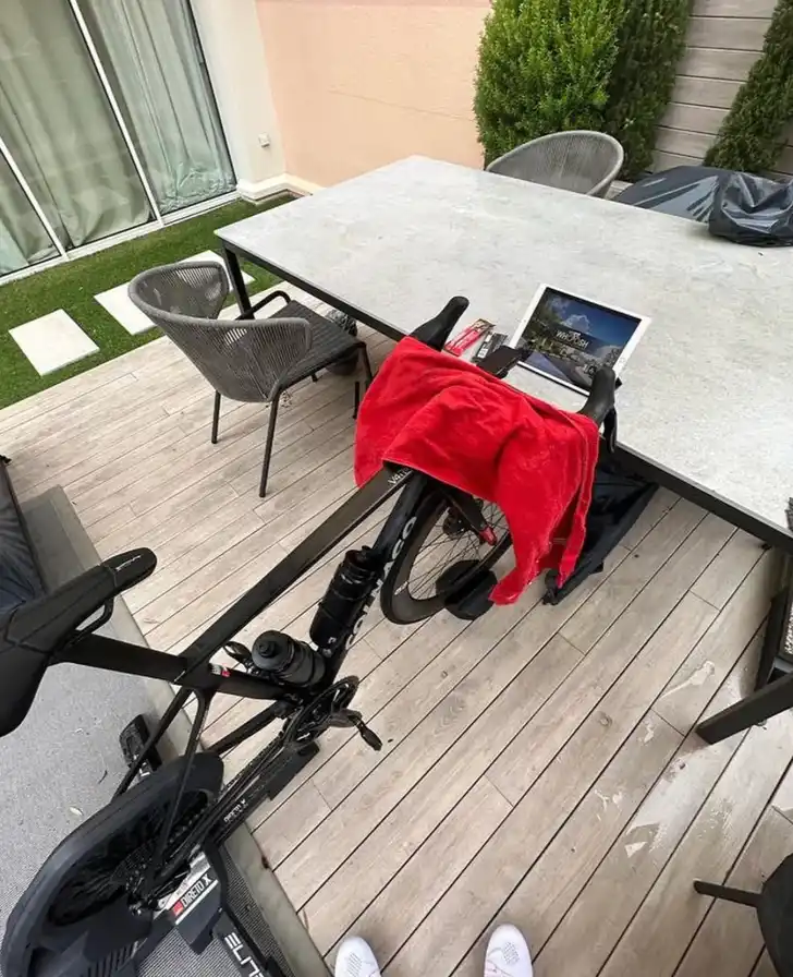 Vooral toen Pogacar een polsblessure opliep in de L-B-L van 2023 trainde hij veel op dit terras.