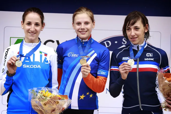 Aafke Soet is namens WNT-Rotor bezig aan een indrukwekkend seizoen. Ze pakte eerder al de bloemen in de laatste rit van de Healthy Ageing Tour, de hoog aangeschreven tijdrit in Borssele, en de Emakumeen Bira, waar ze tot beste jongere werd gekroond. Voor Soet is het niet haar eerste Europese titel uit haar carrière. In 2014 pakte ze namelijk dezelfde prijs al bij de junioren vrouwen (zie foto).