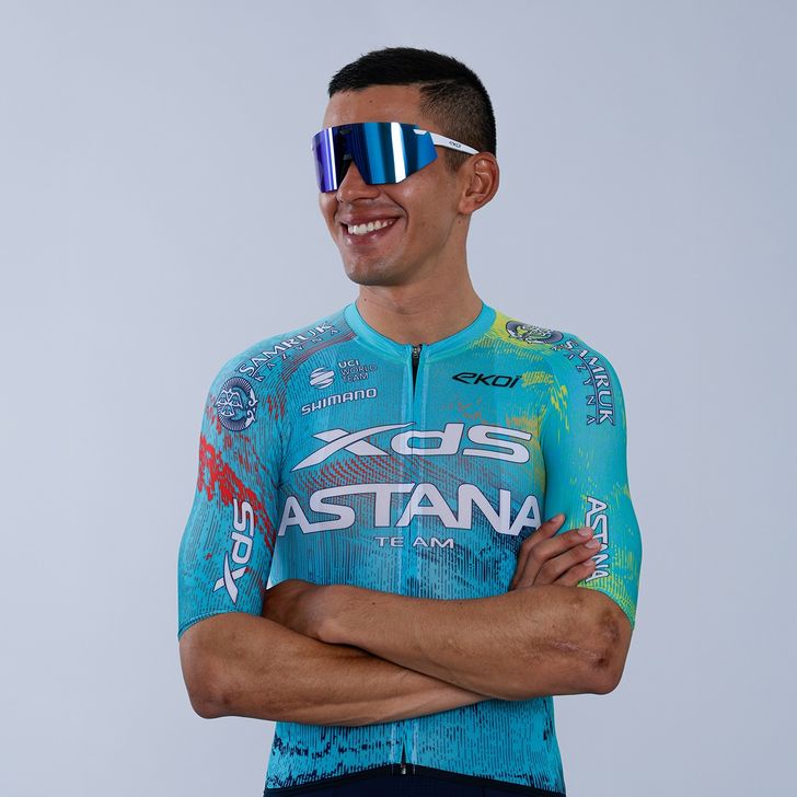 Het teue van XDS Astana Team is niet of nauwelijks gewijzigd: ook in 2026 koerst de ploeg van Alexandre Vinokourov in het lichtblauw met abstracte en kleurrijke patronen erdoorheen.