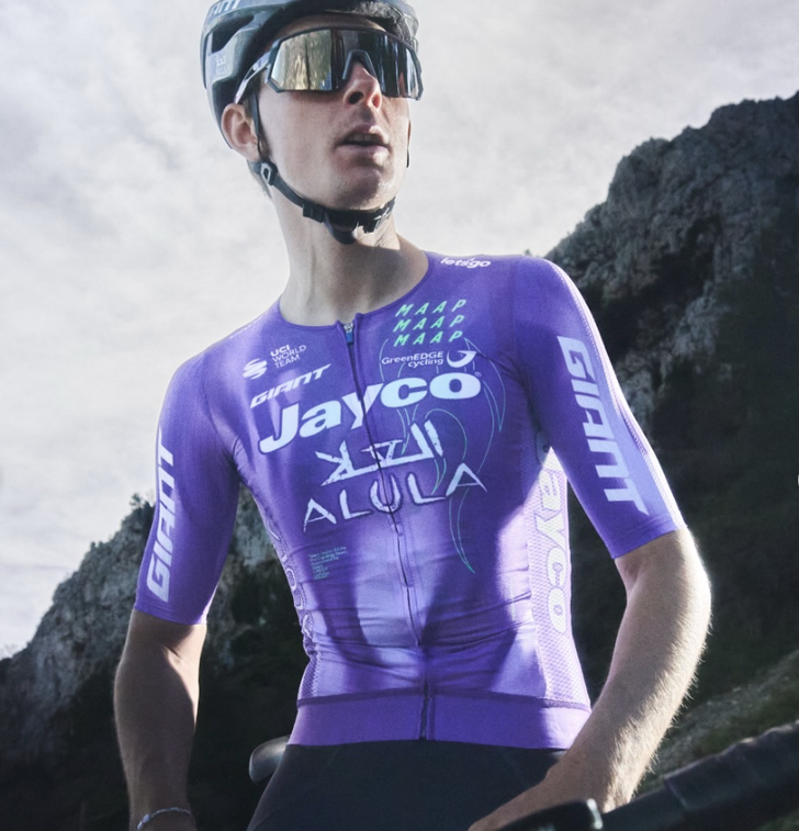 Ook in 2026 rijdt Team Jayco-AlUla in het paars met zwarte broek. Het shirt is echter wel iets gewijzigd ten opzichte van het afgelopen seizoen. Ondanks de opvallende kleur oogt het tenue iets strakker.