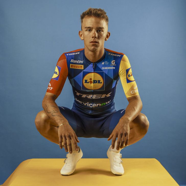 Het shirt van Lidl-Trek blijft ook in 2026 blauw, rood en geel. Het enige dat ander is, zijn de vormen en nadrukken in het shirt. Het blijft een opvallend tenue dat de wielerfan verdeeld: of je vindt het mooi, of je vindt het zooi.