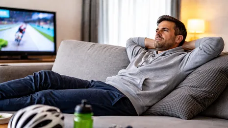 Na een zware rit wil je niks meer ‘moeten’. Dus plof je neer, je zet de koers aan en je lichaam smelt langzaam de bank in. Dat voelt heerlijk, want eindelijk ontspanning.