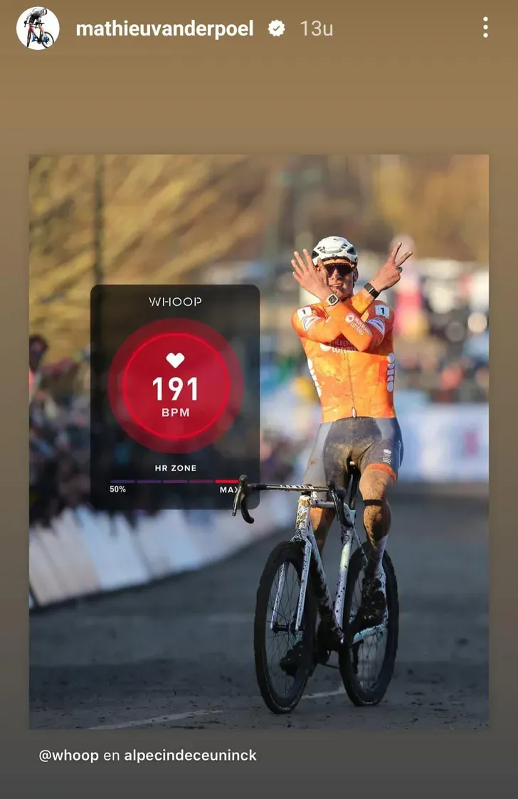 Van der Poel deelde na afloop van die cross niet alleen een feestfoto, maar ook zijn data. Het soort post waar je als liefhebber meteen even bij stilvalt, omdat het de sport ineens heel tastbaar maakt.