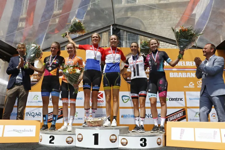 De afgelopen twee jaar ging het rood-wit-blauwe tricot naar Annemiek van Vleuten. In haar regenboogtrui mocht ze vandaag dan ook als laatste aan de Gevangenenpoort in de Brabantse start- en finishplaats vertrekken. Aan het eerste meetpunt kwam de kopvrouw van Mitchelton-SCOTT niet verder dan de vierde tussentijd.