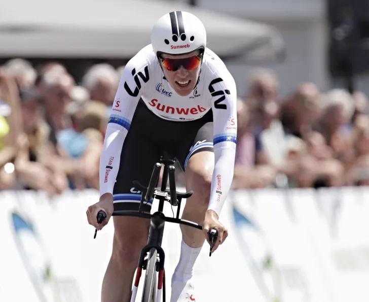Van Dijk moest in het tweede deel van de tijdrit twee seconden inleveren op Van der Breggen, maar de 31-jarige Sunweb-kopvrouw hield voldoende over op de veelvraat van Boels-Dolmans om voor het eerst sinds 2013 weer op het hoogste treetje van het podium te staan.
