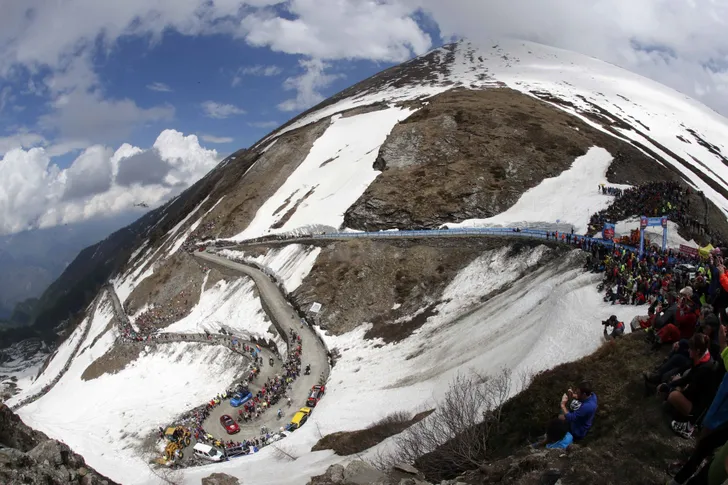 Een heroïsche etappe te midden van imposante berglandschappen: dat kan niet anders dan prachtige kiekjes opleveren. Wieler Revue selecteerde de tien mooiste foto's van de negentiende Giro-etappe.