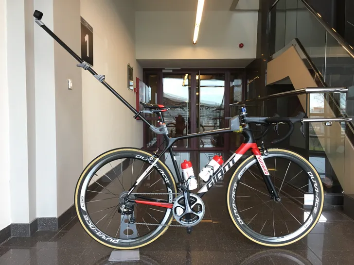 Verbeterpunt twee dan. Tijdens een beklimming iedereen uit het wiel fietsen, is relatief eenvoudig: je trapt gewoon wat harder dan de rest. Maar hoe stel je je concurrenten bergaf op de proef? Dan moet je al bijna de perfecte afdaling rijden. Dat is dan ook precies waar men zich bij Team Sunweb mee bezig houdt. Daarom werd in samenwerking met de knappe koppen van de TU Delft een speciale sensor bike ontwikkeld. Met deze unieke ‘meetfiets’ kan de afdaling van een renner tot in de puntjes geanalyseerd worden.