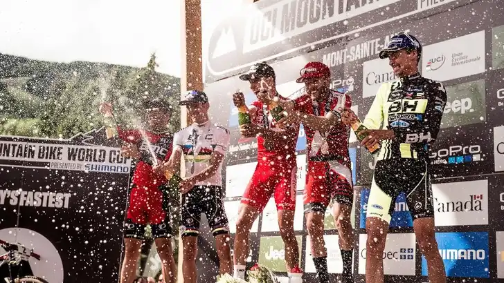 De World Cup mountainbike in Mont-Sainte-Anne is afgelopen weekend uitgedraaid op een klassiek duel tussen de Zwitser Nino Schürter en de Franse wereldkampioen Julien Absalon. De twee vonden elkaar redelijk vroeg in de wedstrijd, reden weg bij de rest van het veld en lieten de beslissing op de laatste ronde aankomen. Op een van de langere beklimmingen op het parcours zette Schürter de aanval in, pakte een kleine voorsprong en dat hield de coureur van Scott-Odlo vast tot het einde.