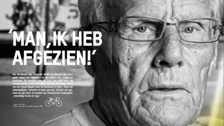 Jan Janssen viert vandaag zijn 75ste verjaardag. En in goede gezondheid. De eerste Nederlandse Tourwinnaar heeft een heftige tijd achter de rug. Na de vondst van een gezwel op zijn lever moest Janssen zes chemokuren ondergaan. ,,Man, ik heb afgezien! Ik kan het niet beschrijven. In de Tour heb ik ritten gehad van 280 kilometer, met vijf cols. Maar wat ik nu meegemaakt heb... Niet te vergelijken! Maar gelukkig: Ik ben er nog!, zegt hij in de Tourspecial van Wieler Revue, die vrijdag verschijnt.