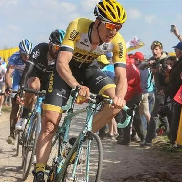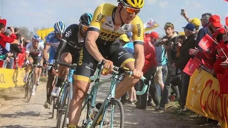 Sep Vanmarcke heeft de laatste twintig kilometer van Parijs-Roubaix afgelegd op een voorwiel van bijna dertig jaar oud. ,,Dit is een model waar ik zelf nog op gekoerst heb", zei Lotto-Jumbo-ploegleider Nico Verhoeven tegen de NOS.